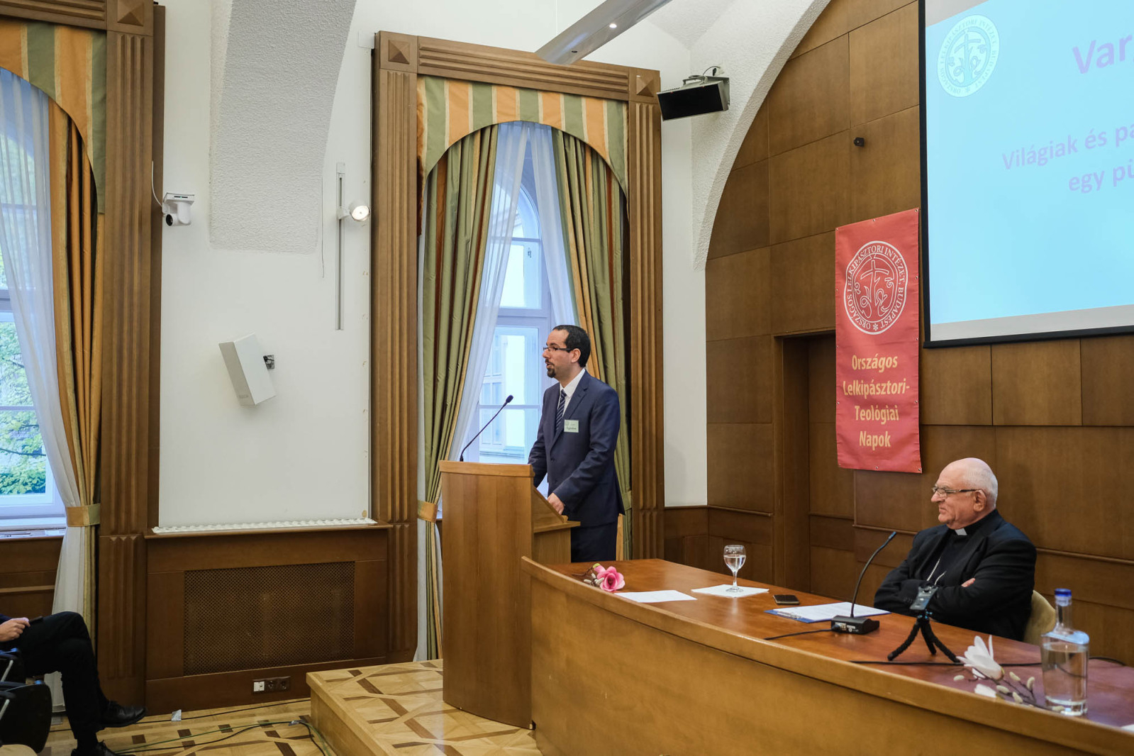 A rendezvény első napján, a lelkipásztori-teológiai napok esztergomi rendezvényének elején Fábry Kornél, az Országos Lelkipásztori Intézet (a találkozót szervező intézmény) igazgatója köszöntötte a megjelenteket – papokat, világiakat –, majd Török Csaba teológiatanár alapozta meg a központi témát Közösség, részvétel, küldetés – a szinodális folyamat Egyházunkban című előadásával, rámutatva a papok és a világiak együttműködésének szükségességére. Végül e közös munka és a közös úton való haladás morális szempontjairól beszélt Papp Miklós görögkatolikus parókus.