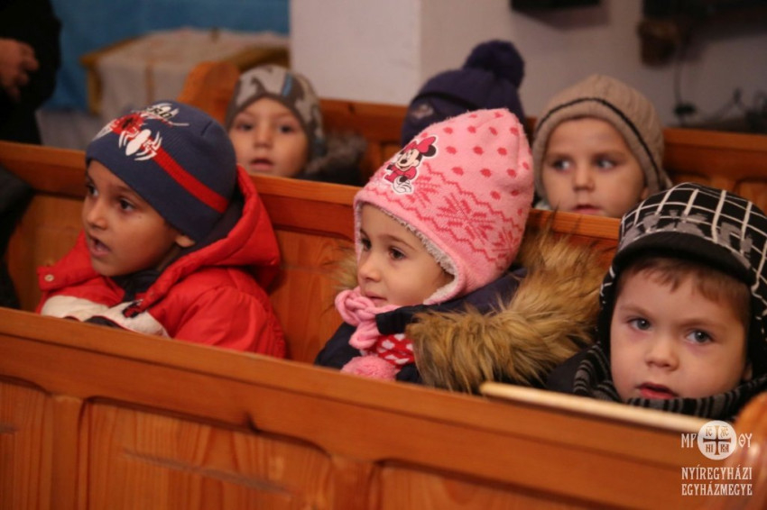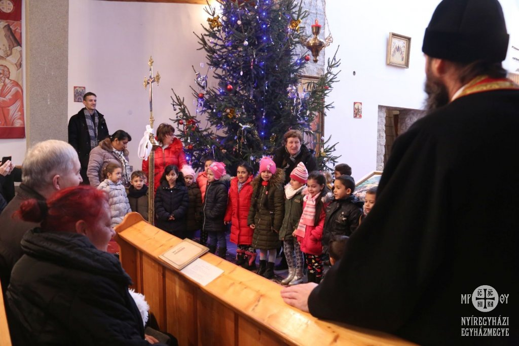 Az imaóra után – elsőként az esztendőben – szívmelengető fogadtatással a hodászi cigány óvodások kántáltak karácsonyi dallamokat magyar és cigány nyelven egyaránt.