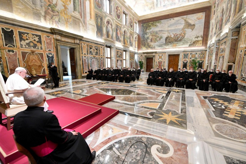 „Egyként haladni előre. Én azért jöttem, hogy életük legyen” – ez a rekollektusok 56. általános káptalanjának témája, amely március 1-jén kezdődött. Emlékeztetve arra, hogy az egész Egyház a szinodalitás útján jár, a pápa hangsúlyozta: „Itt az ideje, hogy együtt járjunk, mindig előre haladjunk, szemünket és szívünket Jézus felé fordítva.” Ferenc pápa beszédében Szent Józsefről szólt, akit a rekollektusok védőszentjükként tisztelnek. „Ennek a nagyon kedves szentnek” két tulajdonságát emelte ki.