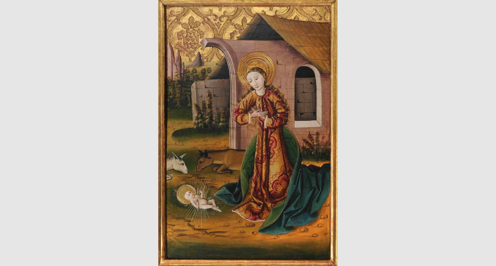 A karácsonyi ünnepkör művészeti bemutatása kapcsán megkerülhetetlen a rácsodálkozásunk ennek az alkotásnak a különleges szépségére. Mielőtt a részletekre is felfigyelhetnénk, a jelenetekre bontott Jézus gyermeksége sorozat és az erényes női mártírok kíséretében középen megjelenő Szűz Mária köti le a figyelmünket.