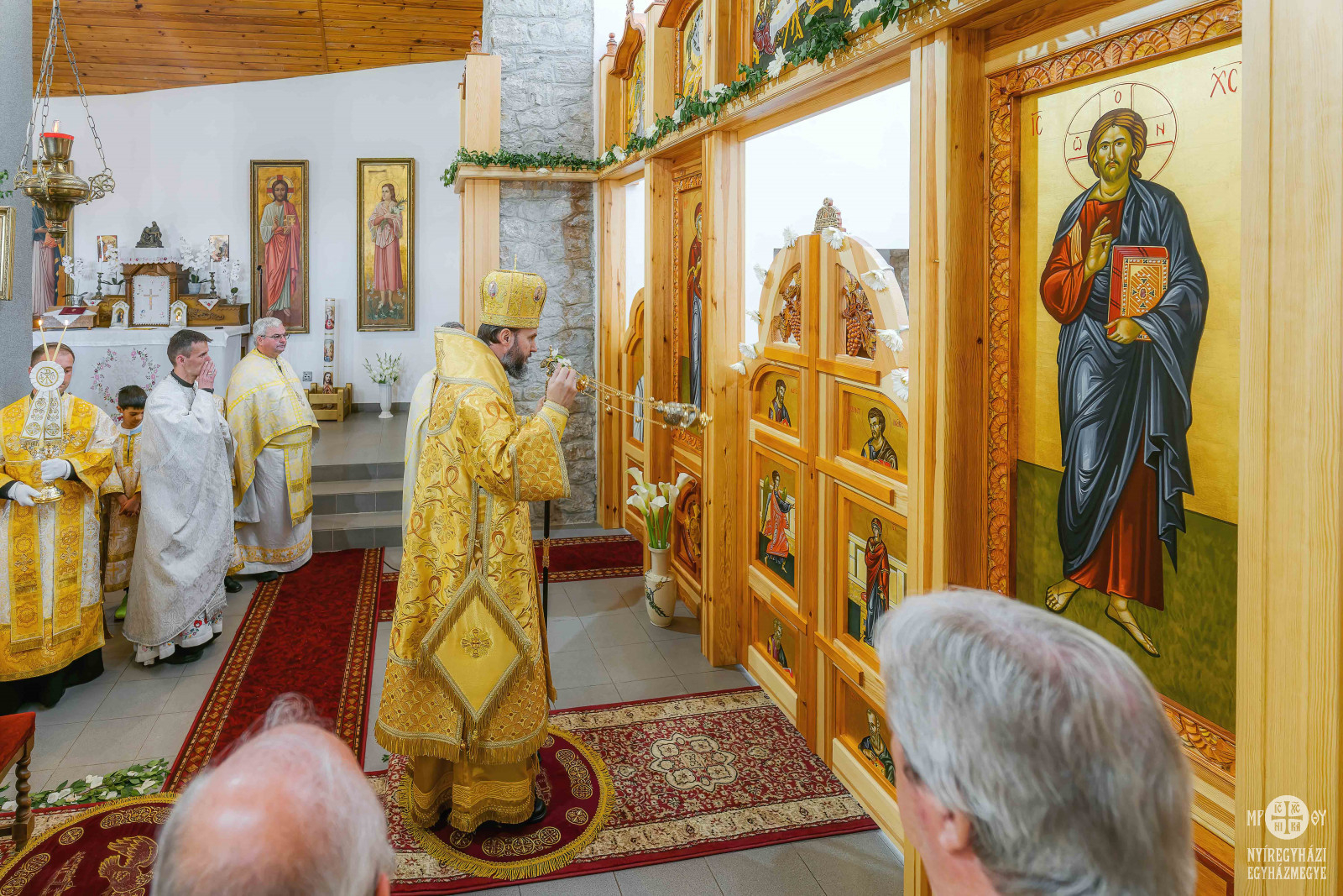 „Amikor 1995-ben felépült ez a templom, mindenki tudta, hogy még nem teljes, hogy egy templom akkor lesz azzá, amikor ikonosztázion ékesíti” – mondta köszöntőjében Kanyó Árpád oldallagos adminisztrátor házigazdaként a búcsúi Szent Liturgián.