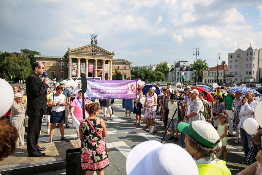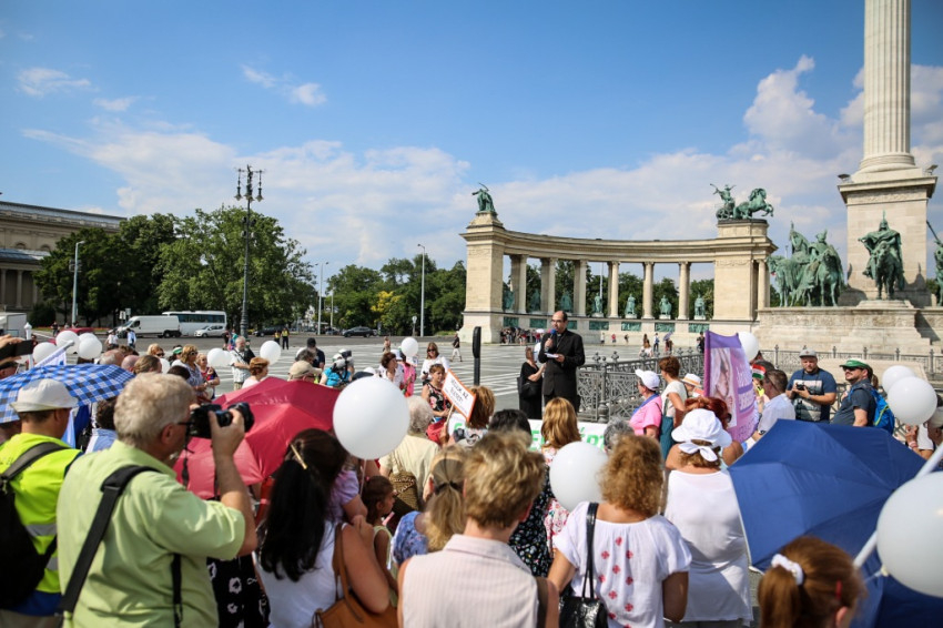 „Védd az életet!” feliratú táblákkal, zászlókkal gyülekeztek az életvédő szervezetek meghívására az emberek június 4-én a Hősök terén. Nyolc évvel ezelőtt maroknyi csapat indult útnak a városban – Albertné Görgey Zsuzsanna kezdeményezésére – a városligeti ’56-os szobortól a Tabánban lévő ’56-os szoborhoz.