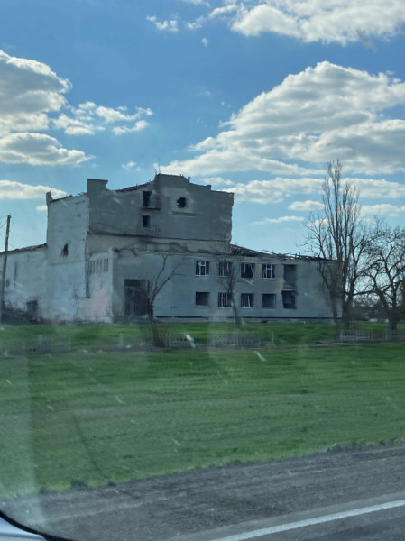Beérkezve Herszonba szembekerültünk a háború kézzelfogható nyomaival. Sérült épületek, házak, amikről a légnyomás leszaggatta a tetőt, az emberek fóliával pótolták, hogy lakható legyen. Valahol már elindult az újjáépítés, de sok még a lefóliázott tető.