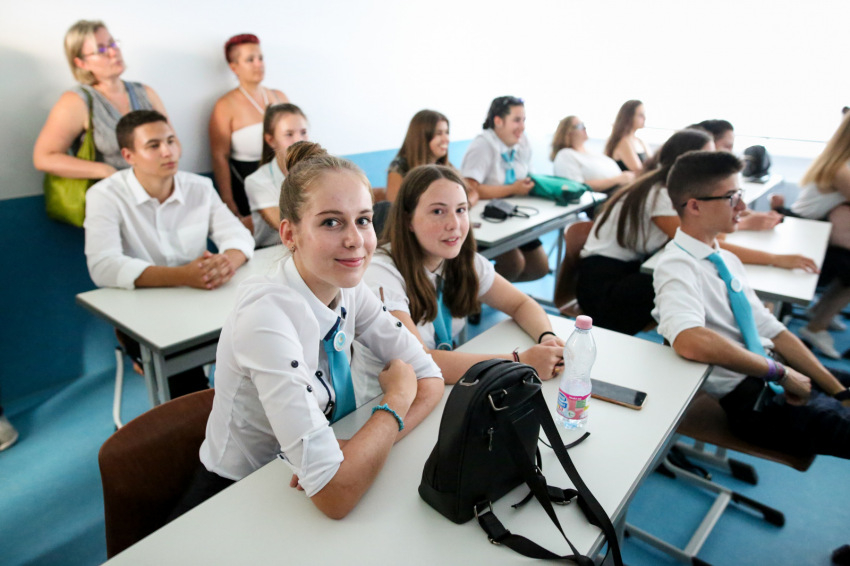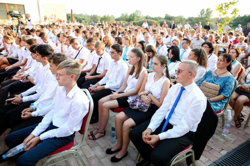 A liturgia után került sor a 2019/2020-as tanév megnyitójára és az épület átadására. Prehodáné Nagy Éva igazgató beszédében elmondta, e mostani a gimnázium harmadik tanévnyitó ünnepsége. A megálmodott terv valósággá vált, és most felfedezésre vár az új tér, ami lehetőséget ad a növekedésre.