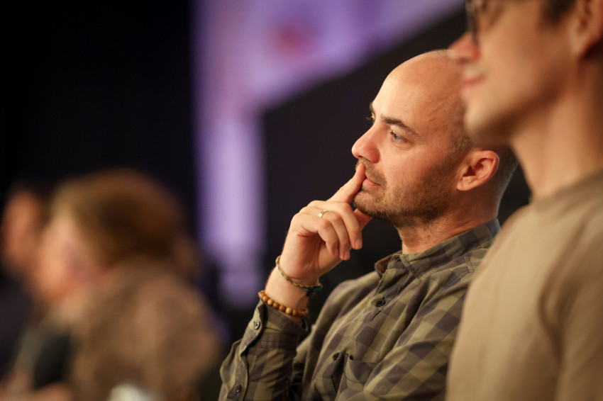 Herjeczki Kornél, a Harmat Kiadó vezetője köszöntötte az érdeklődő közönséget a Pozsonyi úti református templom rendezvénytermében, majd Süveges Gergő szerkesztő-műsorvezető arról kérdezte a jelenlévőket, mikor találkoztak először a munka fogalmával. Ő maga elmondta, neki erről az jut az eszébe, hogy az apukája nincs otthon.
