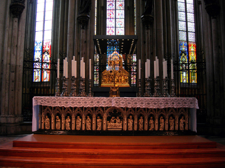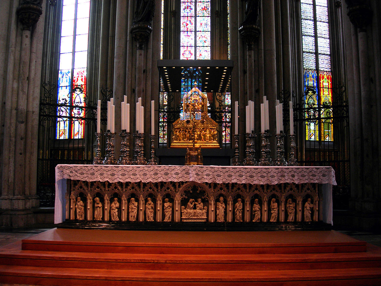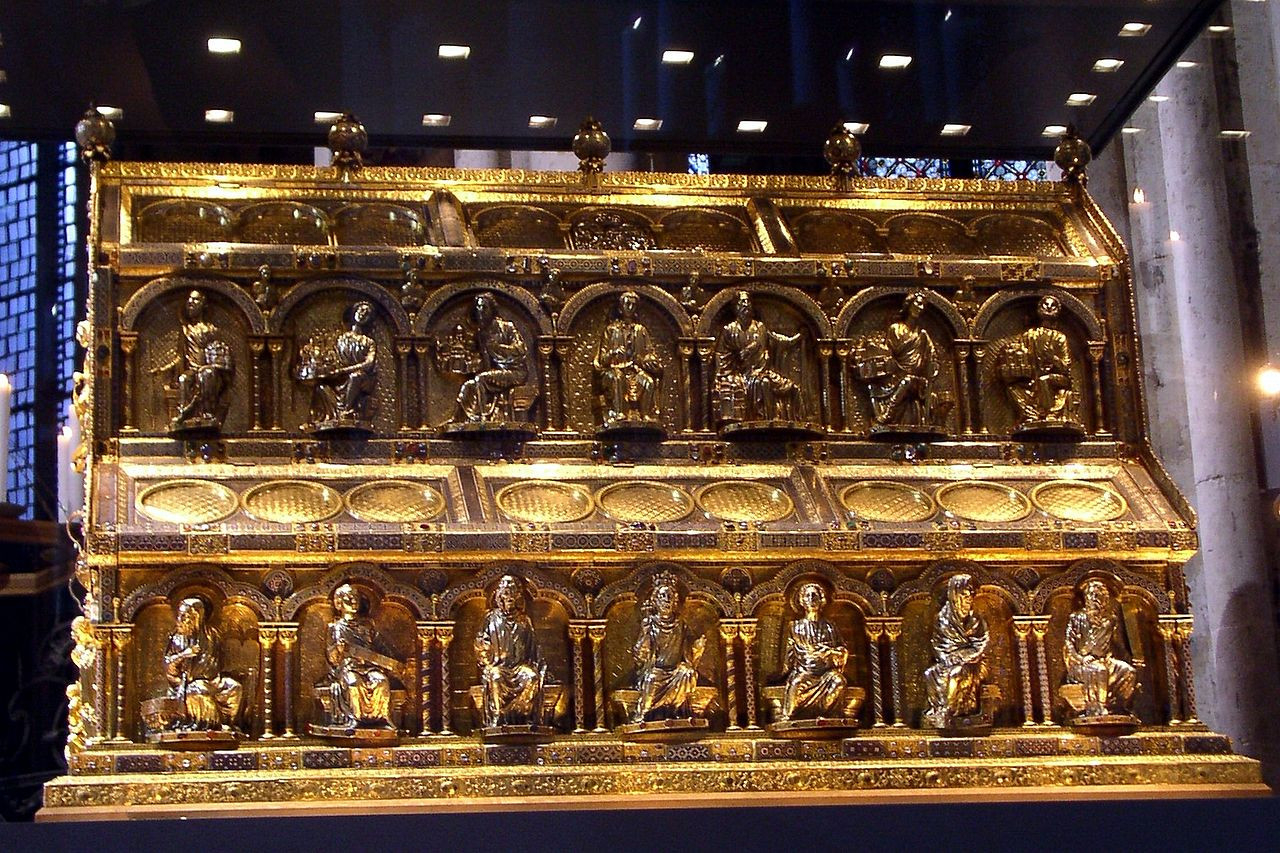 Hogy az ereklyék jelentőségét még inkább hangsúlyozzák, megbízták Nikolaus von Verdunt, a kor leghíresebb aranyművesét a míves ereklyetartó elkészítésével. A mester negyven éven át dolgozott a világ legnagyobb aranyszekrényén. A kölniek számára azonban még ez sem volt elég nagy, ezért egy második „tartót” is rendeltek: ez lett az új kölni dóm. A Rajna-parti város polgárai arra vágytak, hogy az új katedrális a Föld legnagyobb temploma legyen. Így épült meg a gótikus remekmű, mely a Szent Háromkirályok ereklyéi nélkül sosem valósult volna meg.