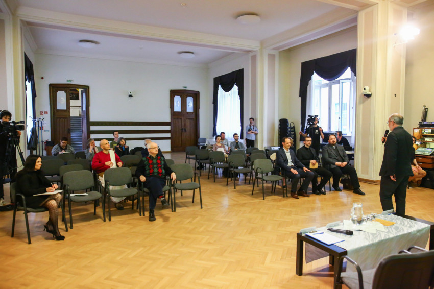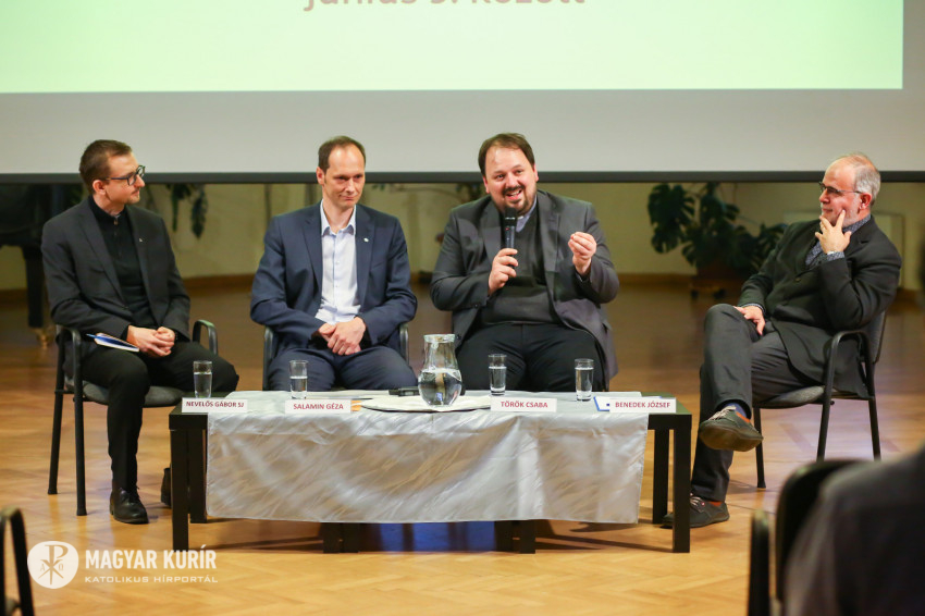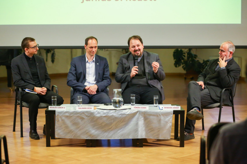 Az előadások után kerekasztal-beszélgetésre került sor, melynek Salamin Géza, Török Csaba, Benedek József és Nevelős Gábor SJ volt a résztvevője.