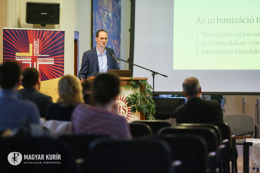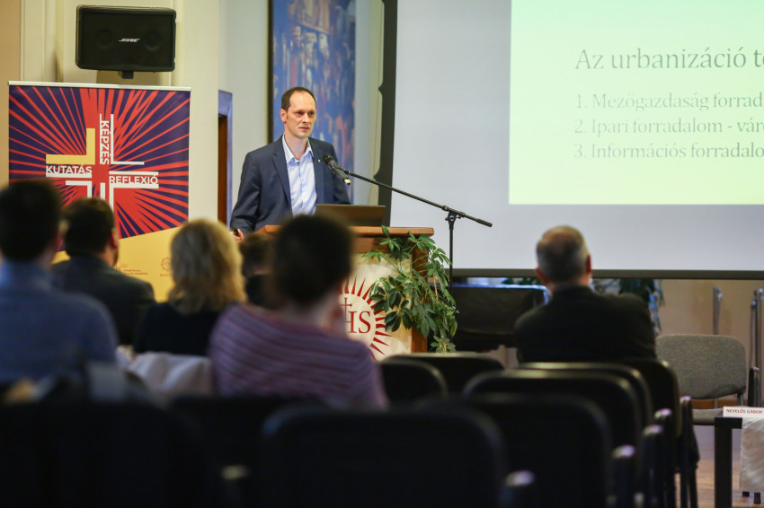 „A város a társadalom tükre. Ferenc pápa Áldott légy kezdetű enciklikájában így ír erről: »A színhelyek, melyek körbevesznek bennünket, befolyásolják azt, ahogyan az életet látjuk, ahogyan érzünk és cselekszünk. Ugyanakkor a szobánkban, otthonunkban, munkahelyünkön és lakónegyedünkben a környezetet használjuk arra, hogy kifejezzük identitásunkat«” – kezdte előadását Salamin Géza gazdaság- és területfejlesztési szakember. Bár a Fenntartható Fejlődési Célok 11. pontja szól a városokról, valójában mind a tizenhét cél érinti valamiképp a városokat.