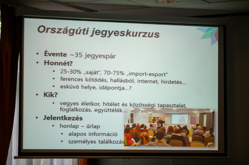 Évente egy, 10 alkalmas, örömszülős találkozóval, őszi utótalálkozóval, családlátogatással kiegészülő jegyesoktatást szerveznek. Krisztus Király ünnepén hirdetik meg, és a nagyböjt kezdetén indítják el. Ezen 35 pár tud részt venni. Lendvai Zalán elmondta, a párok egynegyede helyi kötődésű, többség hallomásból talál el hozzájuk. A csoport általában nagyon vegyes összetételű mind korban, mind hittapasztalatban, mind foglalkozásban. Az utóbbi években 80% köztük a már együttélő. Mindebből következnek a kihívások, így a legfontosabb, hogy minden témáról differenciálva kell beszélni. Kihívás továbbá, el tudják-e juttatni a párokat annak felismerésére, mennyire szükség van a Jóisten támogató kegyelmére a házasságban.