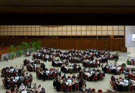 – Újdonság volt, hogy a konkrét munkát egy háromnapos lelkigyakorlat előzte meg. Mint utóbb kiderült, ennek célja nem csupán a lelki feltöltődés volt, hanem ráhangolta a résztvevőket a szinódusi munkára. Ugyanis az elhangzott előadásokat már a lelkigyakorlaton is kiscsoportokban dolgoztuk föl. A kijelölt csoportvezető irányította a beszélgetést, aki figyelt arra, hogy az együttlét ne csak egyszerűen a vélemények megismerése legyen, hanem úgynevezett „Lélekben való beszélgetés”. Ez volt később az egész szinódus módszertana. Az elhangzott hozzászólások után mindig hallgattunk egy kicsit, sok volt a csönd. Ha szólt valaki, csöndben dolgoztuk föl azt, amit mondott, s arra kellett figyelnünk, hogy milyen gondolatokat támaszt bennünk a másik mondandója. A sok más újdonság mellett az is meglepő volt, hogy a nyitó szentmisét követően nem a szinódusi teremben gyűltünk össze, hanem a hatalmas VI. Pál terembe, és itt folyt egész októberben a munka.