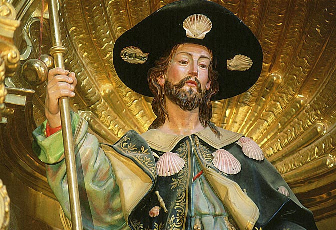 Egyrészt a Szent Jakab holttestének Spanyolországba érkezését övező legendakör. Az egyik történet szerint például miután 44-ben Jakab vértanúhalált szenvedett Jeruzsálemben, testét Spanyolországba vitték. Az egyik ló még a hajón megriadt, s lovasával együtt a tengerbe zuhant – csodával határos módon az állat és gazdája is megmenekült: fésűkagylókkal borítva lépdeltek elő a habokból.