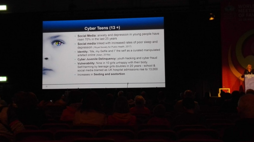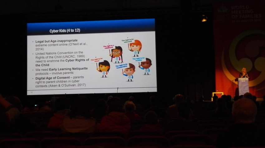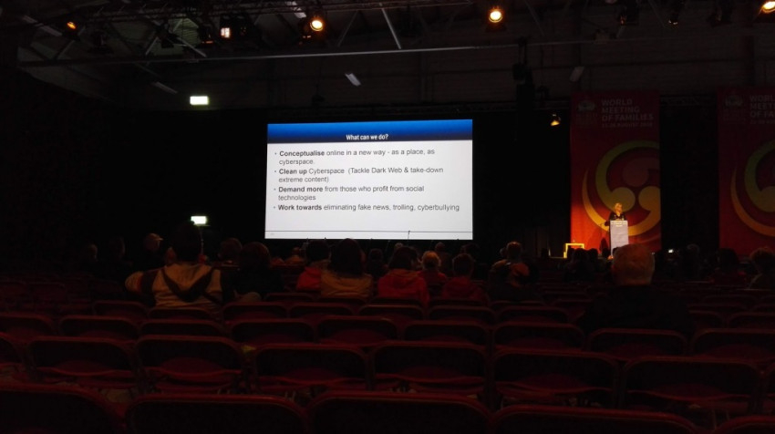 Mary Aiken kiberpszichológus, a Geary-intézet munkatársa, a dublini egyetem (UCD) oktatója, az Europol Európai Kiberbűnözés Elleni Központjának tudományos tanácsadója Jóra fordítani a technológiát – Hit, család és technológia címmel tartott előadást a dublini családtalálkozón.