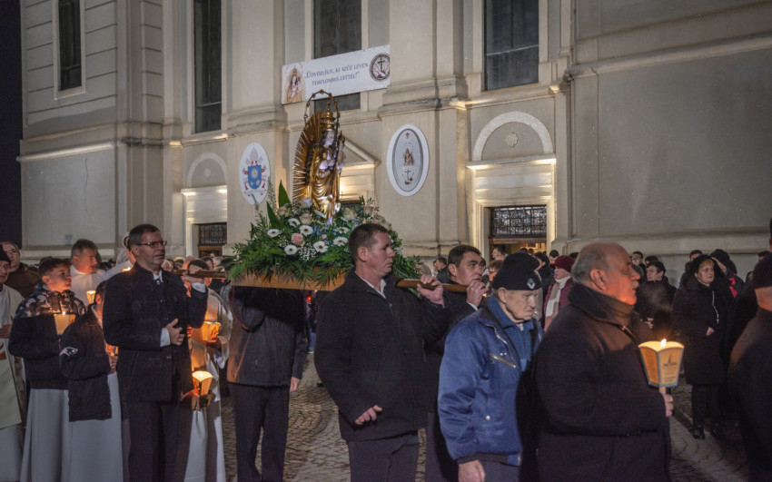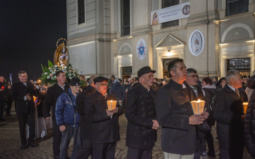 A szentmise után ugyancsak a csíktaplocai egyházközség férfi rózsafüzér társulatának vezetésével a világosság olvasóját imádkozták a zarándokok. A gyertyás körmenetben szintén a rózsafüzér társulat tagjai vitték a Szűzanya kegyszobrának másolatát.