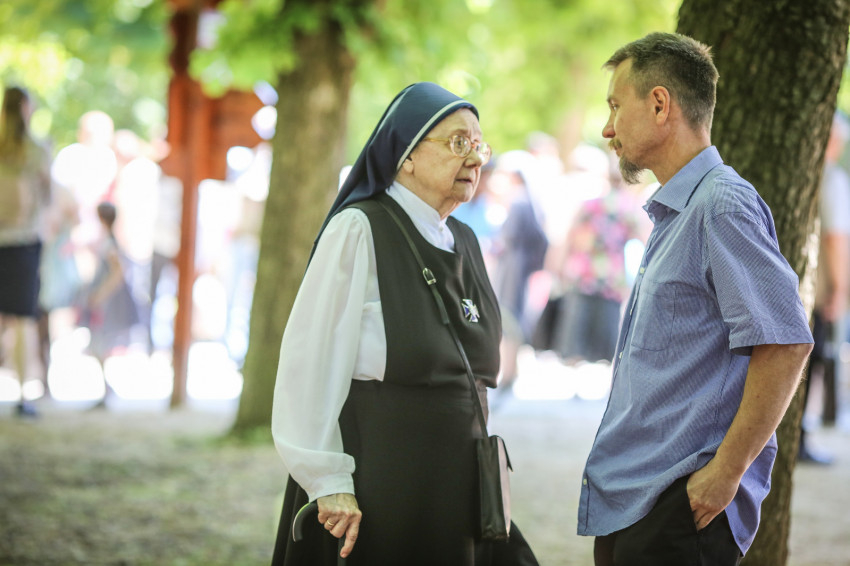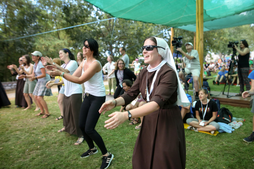 A beszélgetősátorban 13 óra 25 perctől szerzetesek beszélgetnek Martí Zolival a szerzetesi hivatásról.