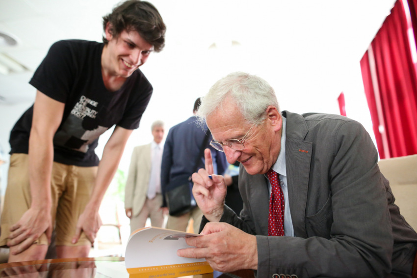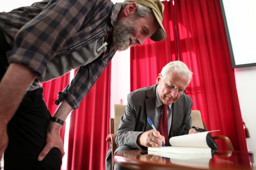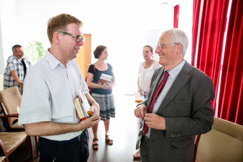 Az est legizgalmasabb része Sólyom László és Juhász-Laczik Albin beszélgetése volt Dobszay János moderálásával. Kiderültek olyan műhelytitkok, hogy Sólyom László három éve hagyott fel minden jogi tevékenységgel, és attól kezdve számára kedves könyveket fordít, többek között olaszból, holott ezt a nyelvet csak nyugdíjba vonulása után tanulta meg. Fontos volt számára Andrea Riccardi kötete: