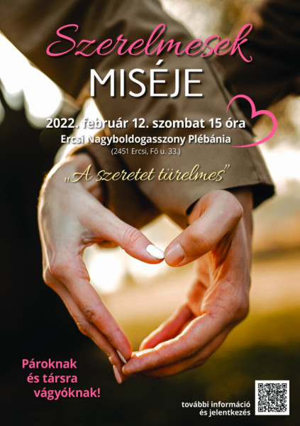 A szerelmesek miséjére várjuk a pillanatnyilag egyedülálló, de családi hivatásra készülő fiatalokat is. A szentségimádás keretében közösen imádkozunk a jövendőbeli házastársakért is.