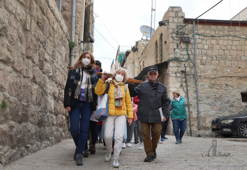 Ugyanez történik a nagyhéten is, amikor virágvasárnap vagy nagypénteken a passiót hallgatjuk. Amikor Péter letagadja, hogy ismeri Jézust, képzeletben ott állunk a Kaifás főpap háza helyén épült Gallicantu- (kakas) templomban, és eszünkbe jut, hányszor tagadtuk meg az Üdvözítőt életünkben. Amikor a nép skandálása következik – „Keresztre vele!” –, megjelenik előttünk a Sion-nővérek zárdájának alagsorában található Lithostrotos, az a köves udvar, ahol Jézus Pilátus előtt állt, aki érthetetlen módon nem akarta elítélni, de félelemből, kezeit mosva, végül mégis elítélte. És eszünkbe jut, mi hány és hány embert ítéltünk el csak azért, mert a többiek is ezt tették, csak azért, mert féltünk, nehogy minket ítéljenek el. Amikor Pilátus a nép elé állítja a megostorozott Krisztust – „Ecce homo – Íme, az ember” –, ott állhatunk az Ecce homo-boltív alatt. Itt kiáltotta a nép, hogy Barrabást, a rablógyilkost engedjék szabadon, ne pedig Jézust, aki senkinek sem ártott, aki csak a jót és a szeretetet hirdette. Eszünkbe kell hogy jusson, hányszor választjuk mi is a rosszat a jó helyett, a bűnt az igazság és a jóság helyett.