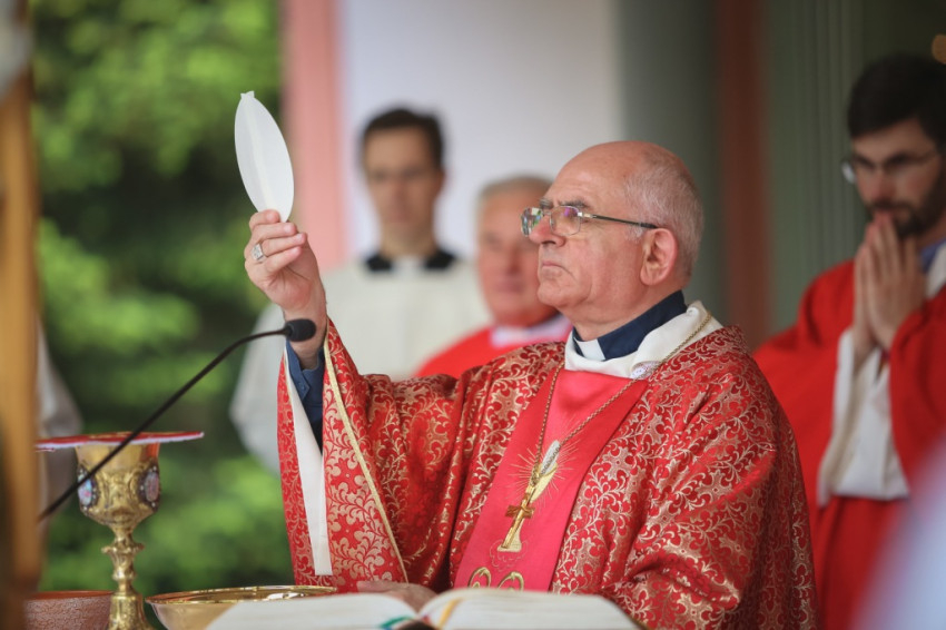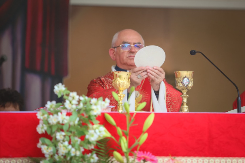 „Nagyon örülök, hogy a Nemzetközi Eucharisztikus Kongresszusra való készület második zarándokállomásához érkeztünk. Tavaly is Szent Vér-kegyhelyen voltunk Bátán, és reményeink szerint jövőre is el fogunk zarándokolni egy hasonló kegyhelyre. Szemléljük most azt a szeretetet, amelyet a mi Urunk, Jézus Krisztus szent testének és vérének odaadásával mutatott meg nekünk. »Kegyelem nektek és békesség!« hallottuk a Jelenések könyvéből Jézus Krisztustól, aki a hűséges Tanú. A mi Urunk a szentháromságos szeretet tagja. Annak a szeretetnek, amely nemcsak megszólította az embert, illetve megteremtette számára szeretetből mindazt, ami ezen a világon csodálatos, és egyben lehetőség életünk kibontakozásához, hanem megszólította az embert a prófétákon keresztül. Elmondta üzenetét, mert nagyon szeret bennünket.