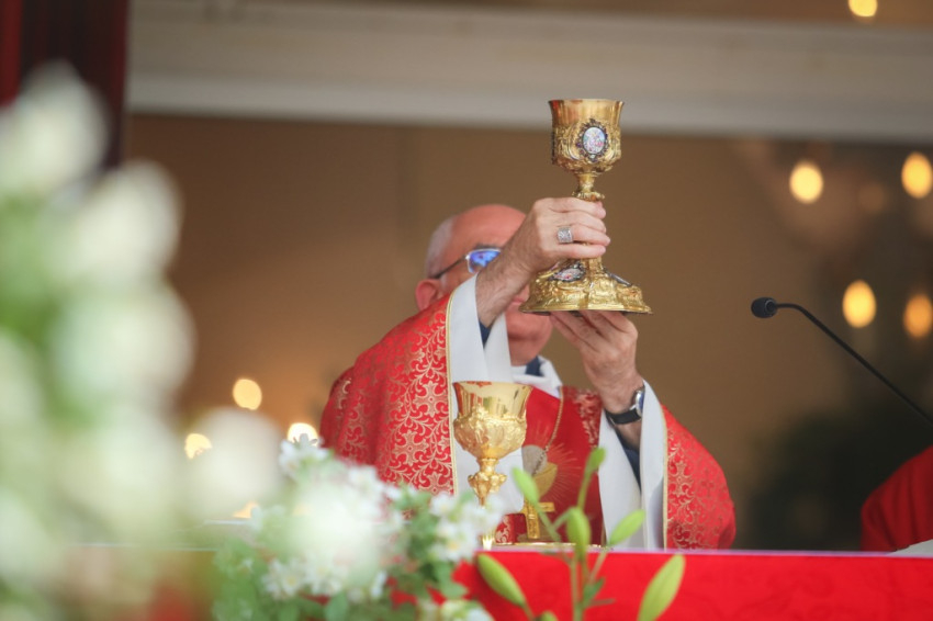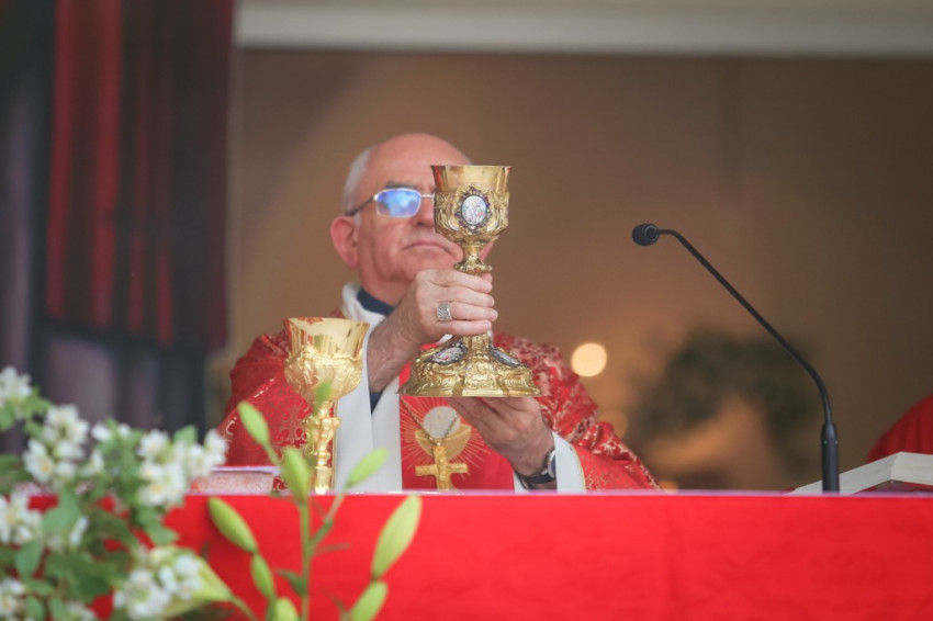 Adjunk hálát ezért a szeretetért, a Szentháromságért. Ez a szeretet megtart bennünket ezen az úton. Legyünk hálásak, de ne csak a szavainkkal, hanem a tetteinkkel is. Vegyétek, egyétek Isten szeretetének jelét, az Eucharisztiát! Adjátok magatokat teljesen elégő szeretetáldozatként Istennek! A világ várja ezt a szeretetet tőletek, illetve tőlünk, papoktól. Segítsen ez a zarándoklat bennünket, hogy igent tudjunk mondani!”