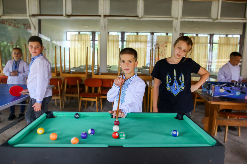 Egy világoskék szemű 13 éves fiú elmondja, hogy nagyon tetszik neki Magyarország, még soha nem járt itt, ez az első alkalom. „Jó, hogy ilyen nagy tó van itt, a magyar tenger.” Kíváncsi vagyok, tudott-e máshol nyaralni idén, azt feleli, Kijevben járt. A többiekkel focizni, csocsózni, biliárdozni szoktak, felfedezik a környezetet, kisétálnak a Balatonhoz.