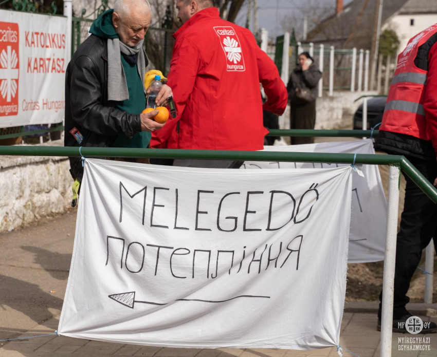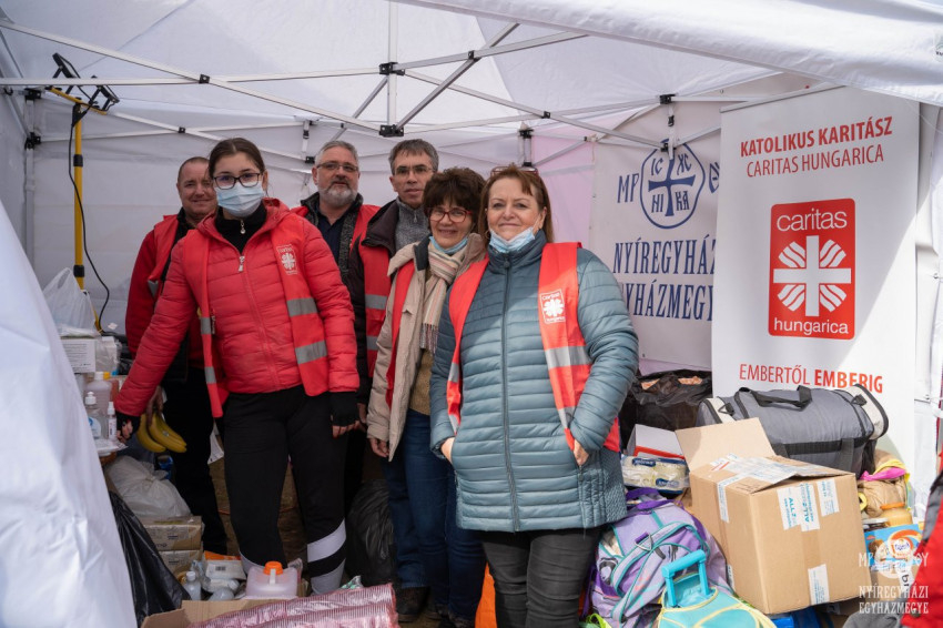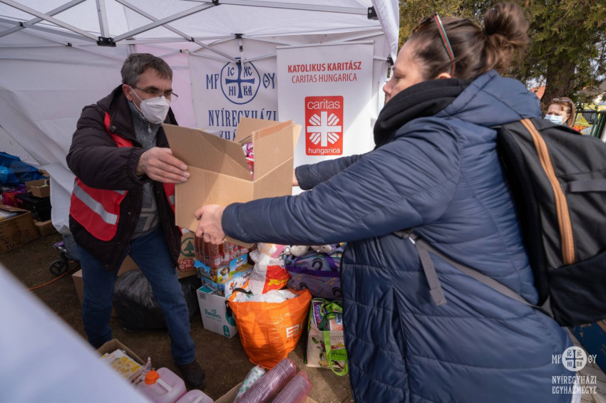 Mások a karitászközpontban segítenek: a nyírszőlősi hívek a beérkezett ruhaneműt, élelmiszert válogatják, szortírozzák. A Nyíregyházi Egyházmegyei Karitász központja, a Szent Miklós-ház nagy forgalmat bonyolított az elmúlt tíz napban. Ami felajánlás beérkezik, szinte azonnal szállítják a határhoz a fogadópontba, vagy a kárpátaljai karitászon, papokon keresztül a határon túlra. Ott a belső Ukrajnából menekülőknek készítenek meleg ételt, s ebből látják el a Kárpátalján egyedül maradt embereket.