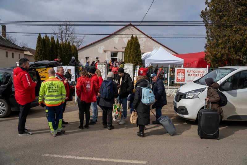 Écsy Gábor országos karitászigazgató elmondta: „A határnál áttértünk a hosszú távú munkára. Felajánlásból elhelyezett konténerek váltották fel a háború kezdete óta működő sátras segítőpontot. Így alkalmas helyen tud működni a menekültek ellátását, továbbutazását, elszállásolását és a szociális feladatokat szervező munka. Önkénteseink ideiglenes szálláshelye is komfortosabbá vált.
