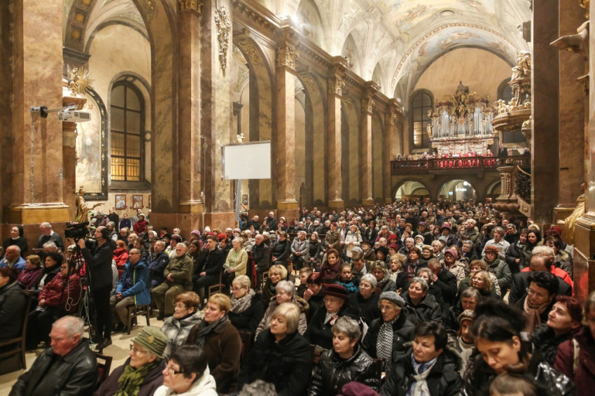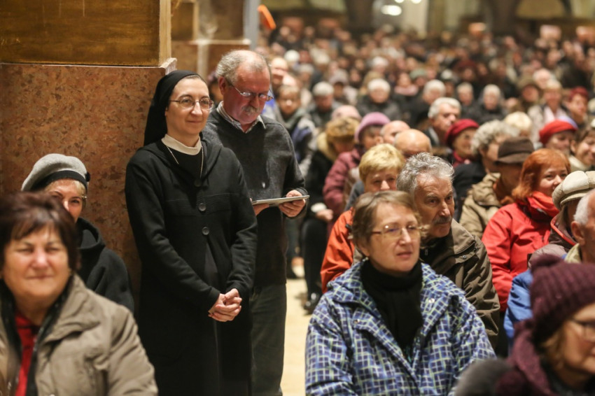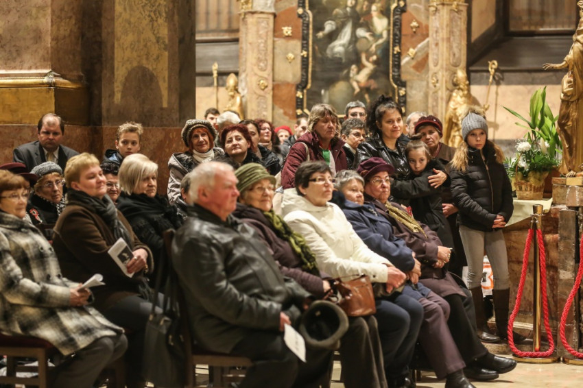 A ferences szerzetes egy egyiptomi élményét osztotta meg a hallgatósággal: Remete Szent Antal barlangjában jártak, mely ma is ugyanabban az állapotban van, mint egykor. „Nyugalom töltötte be a szívemet, s arra vágytam, bárcsak eltölthetnék ott egy hónapot. Aztán a mi templomainkra gondoltam, ahol a szentmisére összegyűlünk, de napközben néptelenül állnak. Milyen jó lenne újból belakni a templomokat!” Böjte Csaba fogadott gyerekei életéből hozott példát – sokszor küldi be őket egy-egy galiba után a templomba egy üres papírral. „Írd le, mit kérsz, s mit ajánlasz Istennek!” Arra buzdított, érezzük jól magunkat templomainkban. „Ott keresztelkedtünk, ott a mi igazi hazánk, s az Egyházunk az elmondott imáinkból tud megújulni.”