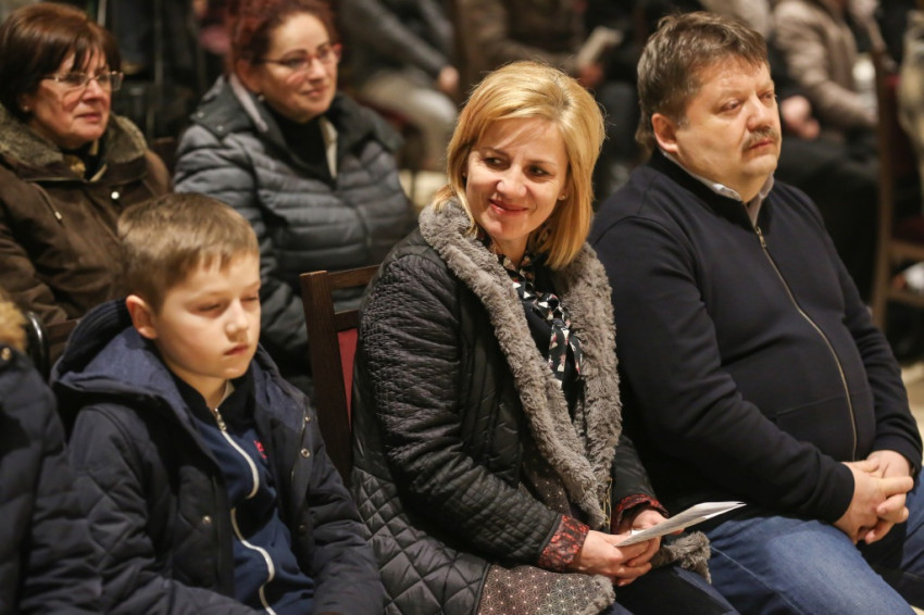 Böjte Csaba szavai nyomán megelevenedett Mária és József otthona. „Pislog a mécs, a család az asztal körül ül. Megköszönik együtt a napot. Jézus azt ígéri nekünk, ha a szeretet útján járunk, velünk is olyan mély kapcsolatot fog kialakítani, mint az édesanyjával. Ha igent mondunk Istennek, mi megkereszteltek is istenhordozók vagyunk.”