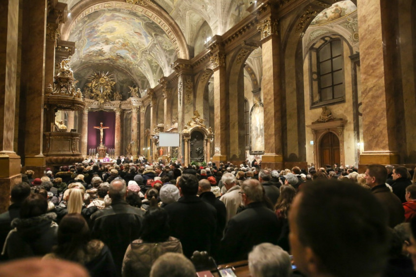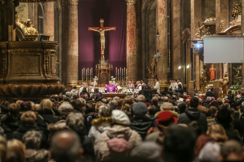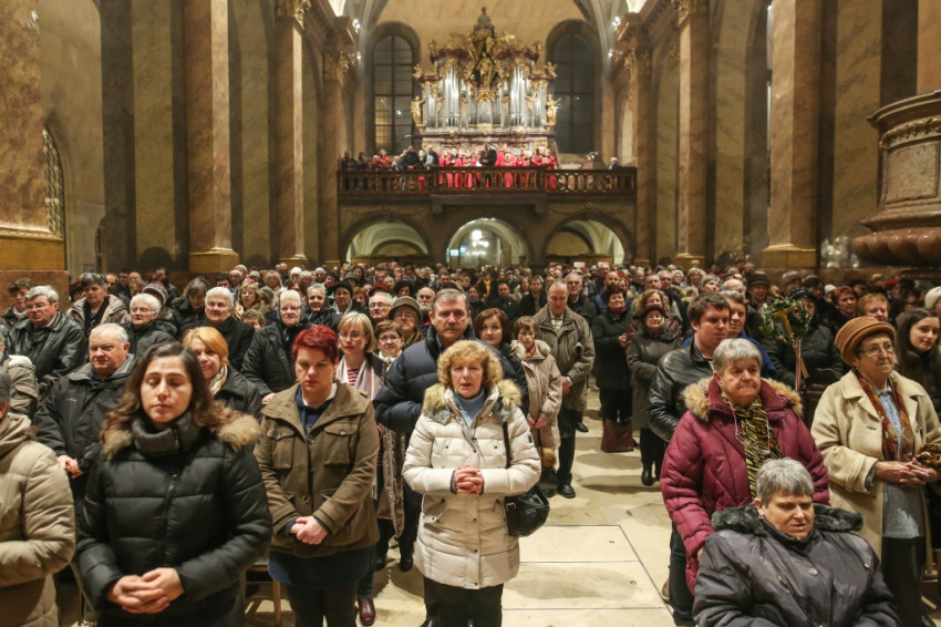 Öt órától teával, pihenővel, beszélgetéssel várták a zarándokokat a szemináriumban a papnövendékek. A téliesre fordult idő ellenére sokan érkeztek gyalog a Győri Egyházmegye számos településéről, Soprontól Vénekig. A székesegyház egészen megtelt, ismét nagy számban gyűltek össze szeretett, a történelem viharait túlélt búcsúnapjukra a hívek. Az esti szentmisét Veres András megyéspüspök mutatta be, a szónok Böjte Csaba volt.