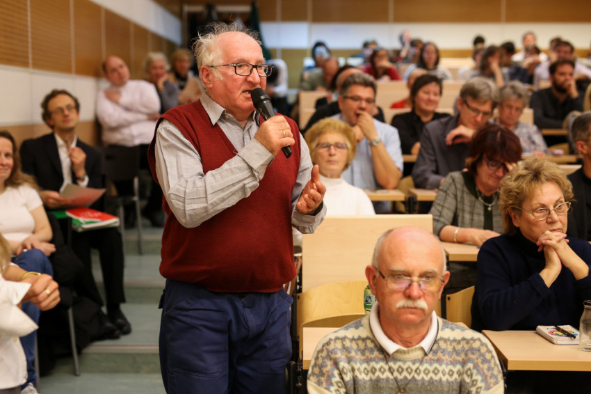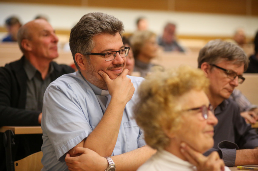 Karasszon István református lelkész, teológiai doktor, a Károli Gáspár Református Egyetem Hittudományi Karának tanára, a KZST tagja az Ószövetség ember- és történelemképéről, mint az európai emberkép egyik legfőbb forrásáról beszélt. Rámutatott, hogy az ószövetségi történetek hősei sok esetben ellentmondásosnak tűnnek, keveredik bennük a jó és a rossz, sőt, adott esetben mindkettő megtalálható ugyanazon tettükben. Jákob a Jabbok gázlójánál előre küldi a családját, mert fél a bosszútól, Ézsau jövetelétől (ezt aligha tenné meg jóravaló ember a családjával), s ez kétségkívül negatív tett, de mindennek pozitív olvasata is van: csak egy négyszemközti találkozásban valósulhatott meg az a bizonyos találkozás a titokzatossal, s ehhez Jákobnak le kellett maradnia a többiektől. Dávid ugyanígy rosszat tett (lásd: Betsabéval való kapcsolata), de amikor a próféta szembesíti a tettével, úgy viselkedik, mint minden igazán kegyes ember: töredelmesen megvallja bűneit. Példája ez annak, hogy az egymást kiegészítő komplementer igazság jellemzi az emberi létet – fejtette ki az előadó.