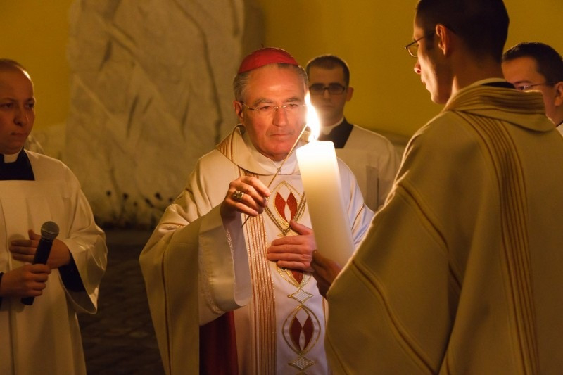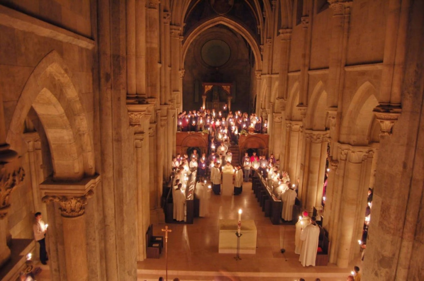 Április 19-én, nagyszombaton este tízkor kezdődött a Jézus Krisztus dicsőséges feltámadására emlékező liturgia Győrben, a Nagyboldogasszony-székesegyházban.