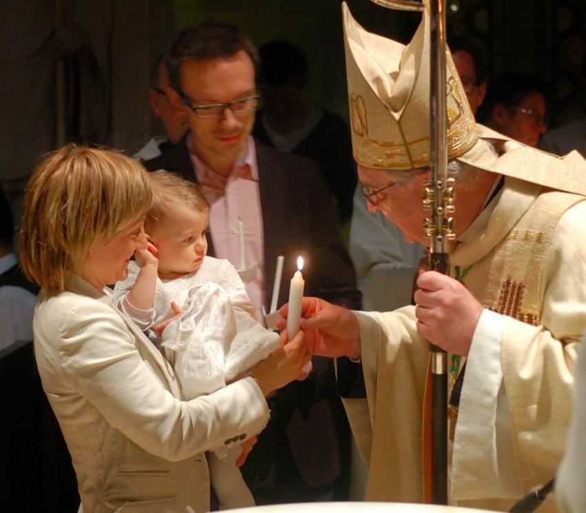 Spányi Antal megyéspüspök beszéde után keresztségi szertartás, a keresztség megújítása, a víz megáldása és a mindenszentek litániájának elimádkozása következett. Ezen az éjszakán két katekumen vette fel a beavató szentségeket. A szentségek fölvételéhez kezeseikkel együtt jelentek meg a püspök előtt, majd fehér ruhában és égő keresztelési gyertyával kezükben tértek vissza helyükre. A hívő közösség megújította keresztségi fogadalmát, melyet a víz megáldása és a mindenszentek litániájának elimádkozása követett.