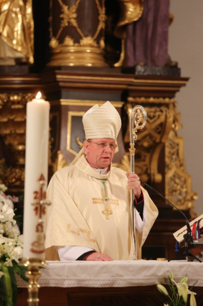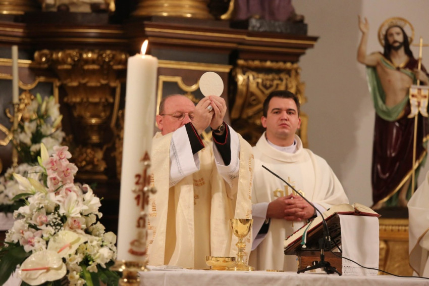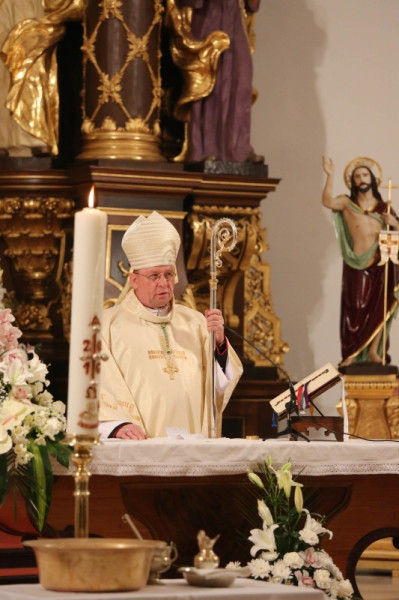 Palánki Ferenc megyéspüspök a szentmise homíliájában kifejtette, a húsvéti fény nem kívülről ragyog, hanem belülről, hiszen a szívünket gyújtotta lángra Jézus Krisztus szeretete, jósága, irgalma. Mindazokban, akikben ez a fény kigyullad, képesek felismerni a feltámadt Krisztust, de a közömbös ember nem tudja ezt megtenni. Még az apostolok is üres fecsegésnek tartották a jó hírt, amikor az asszonyok elmondták, hogy „üres a sír”. Péter apostol kiment a sírhoz, elcsodálkozott azon, amit látott és hazament.