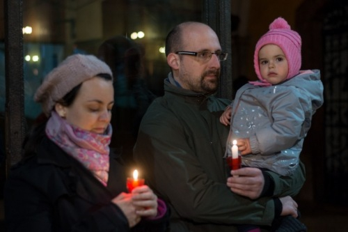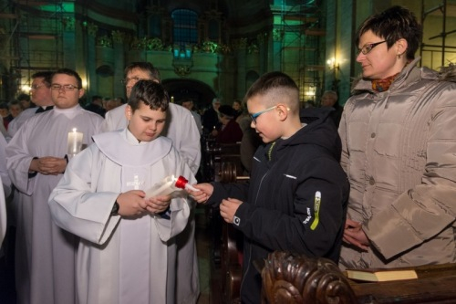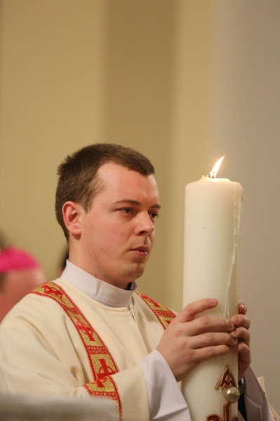 A húsvéti gyertyával bevonuló pap háromszor énekeli: Krisztus világossága! amire a liturgián résztvevők azt felelik: Istennek legyen hála! – idézte a húsvéti liturgiát a megyéspüspök. Igen, ez az az alkalom amikor megköszönjük Krisztus világosságát, az abban való részesedést, az istengyermekséget. Ebből következik, hogy meggyújtják a magukkal hozott gyertyákat a liturgia résztvevői. Ezzel a mozzanattal a keresztségünkre emlékezünk. Mindnyájunknak feladatunk őrizni hitünk fényét, a krisztusi hitet. De nem csak a magunkét, hanem a ránk bízottakét, mondta a főpásztor.