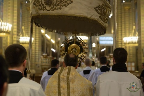 A beszéd után következett a Mindenszentek litániájának elimádkozása, a víz megáldása és a hívő közösség keresztségi fogadalmának megújítása. A főpásztor körbejárva meghintette szenteltvízzel az egybegyűlteket. Az áldozás után a hívek a papsággal együtt körmenetben haladtak végig az éjszakai belvároson, majd visszatérve a templomba, rövid imádság után szentségi áldásban részesültek.