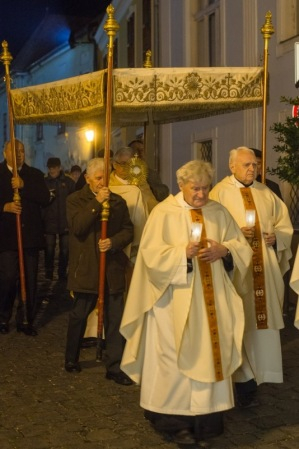 A szertartás végén a főpapság, az asszisztencia, a hívek és a zenei szolgálatot végző Palestrina-kórus közös körmenetben fejezték ki Krisztus feltámadása felett érzett örömüket a Káptalandombon.
