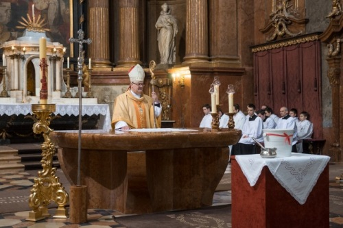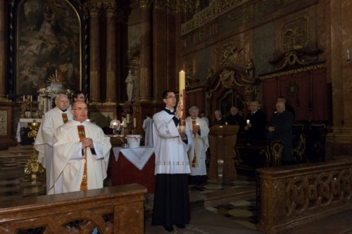 Március 26-án, nagyszombaton Pápai Lajos megyéspüspök vezetésével tartották húsvét vigíliáját a győri Nagyboldogasszony-székesegyházban.