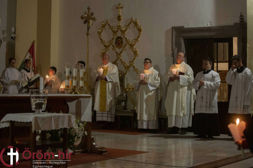 Palánki Ferenc debrecen-nyíregyházi megyéspüspök a debreceni Szent Anna-székesegyházban mutatta be a nagyszombati liturgiát, ahol hívek százai várták, hogy részesülhessenek Jézus Krisztus feltámadásának örömében.