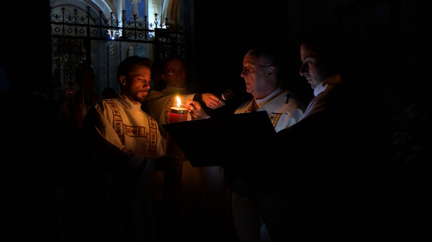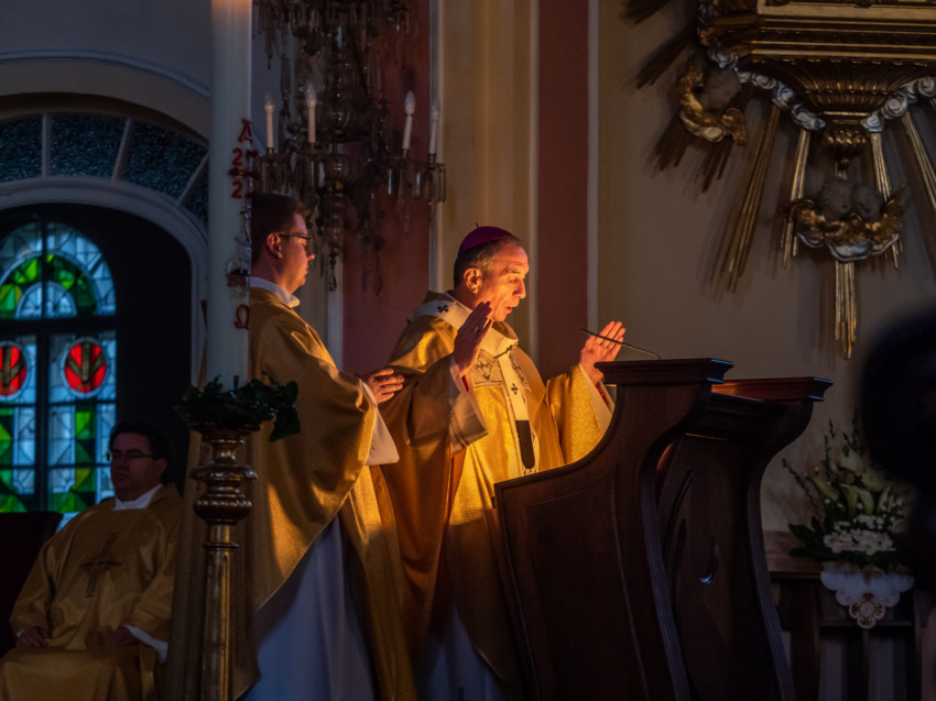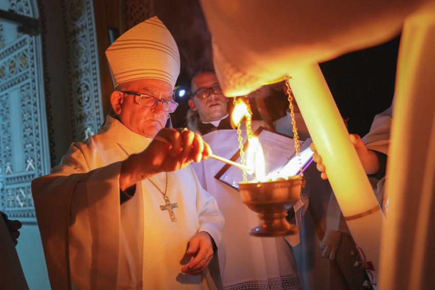 Urunk feltámadásának ünnepén, húsvét vigíliáján, a veszprémi Árpád-házi Szent Margit-templomban Udvardy György érsek vezette a szertartást Takáts István általános érseki helynökkel, Tornavölgyi Krisztián érseki irodaigazgatóval és Tamás Zoltán káplánnal.