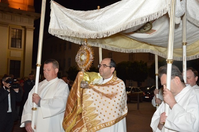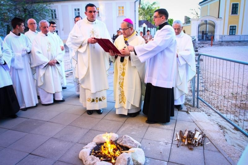 A húsvéti vigília a váci székesegyház főbejárata előtt kezdődött, ahol Beer Miklós váci megyéspüspök elvégezte a tűzszentelés szertartását, majd a templomba vonultak, ahol egy diakónus gregorián dallammal elénekelte a húsvéti öröméneket. Ezt követően felolvasták a négy ószövetségi olvasmányt, majd felcsendült a Glória, és ismét megszólaltak a nagycsütörtökön elnémult harangok, emlékeztetve mindannyiunkat Krisztus győzelmére.