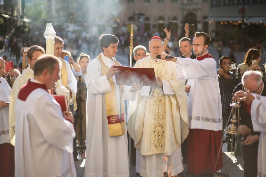 Erdő Péter bíboros, miután megáldotta a tüzet és meggyújtotta a húsvéti gyertyát, hangsúlyozta, hogy remény és öröm számunkra is Húsvét ünnepe. Öröm, mert akit szeretünk, akiben bízunk, él és velünk marad mindörökre. Jóban-rosszban, szenvedésben és örömben összetartva segítsük egymást anyagilag, testileg és lelkileg egyaránt és bátorító, vonzó, erőt sugárzó jel lehessünk az egész világ előtt – kérte a hívektől.