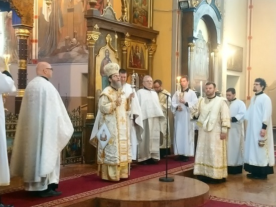 Körmenettel vette kezdetét éjfélkor a feltámadási szertartás, melyet Szocska A. Ábel nyíregyházi megyéspüspök vezetett a Szent Miklós-székesegyházban. Papp Tibor főhelynök Aranyszájú Szent János húsvéti beszédét olvasta fel.