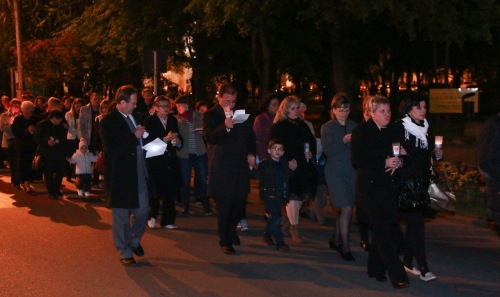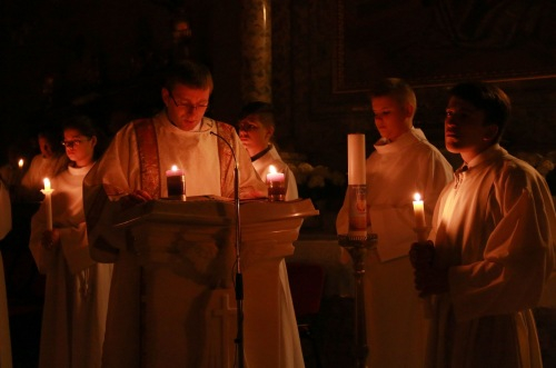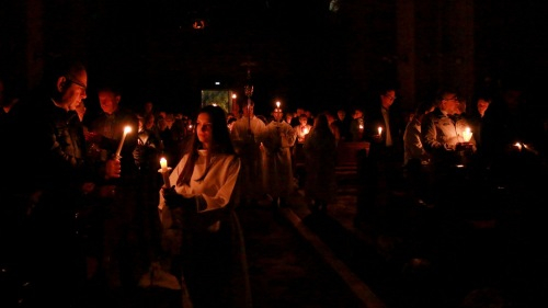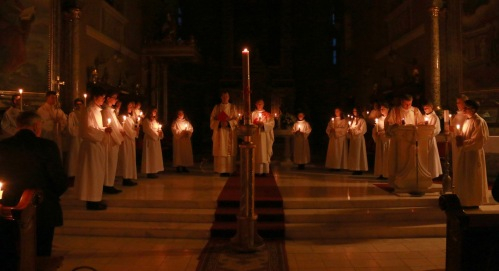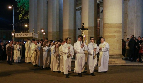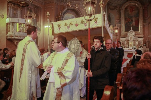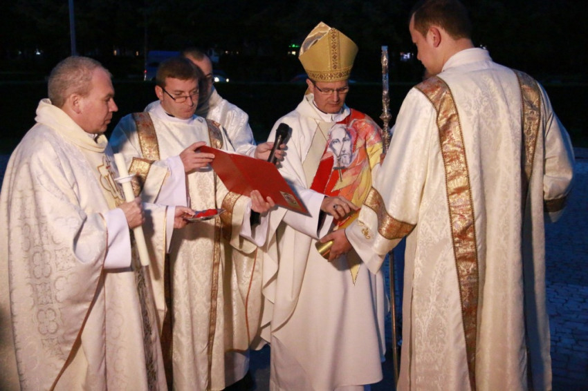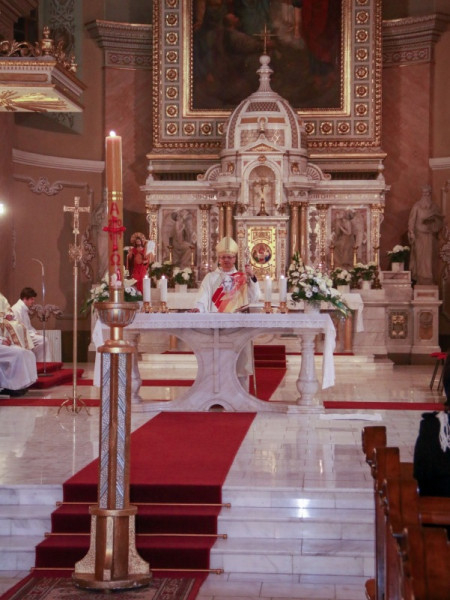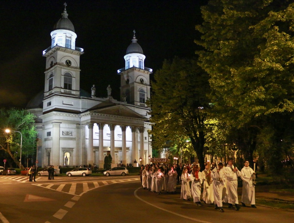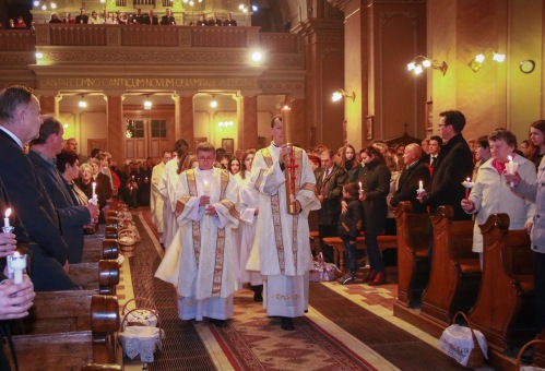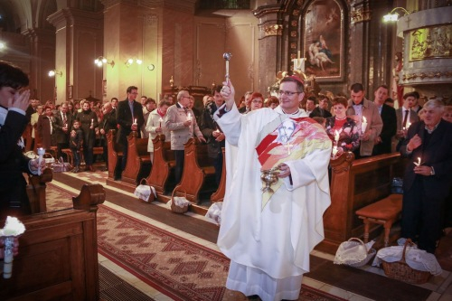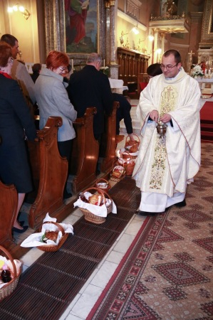A templomba visszaérkezve Schönberger Jenő püspök négy – magyar, román, német és olasz – nyelven kívánt boldog húsvétot és megáldotta a hívek által kosárban elhozott eledeleket.