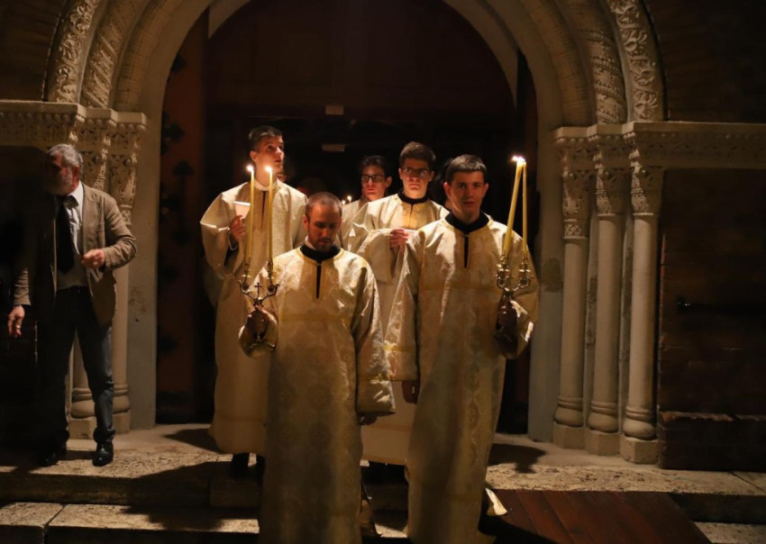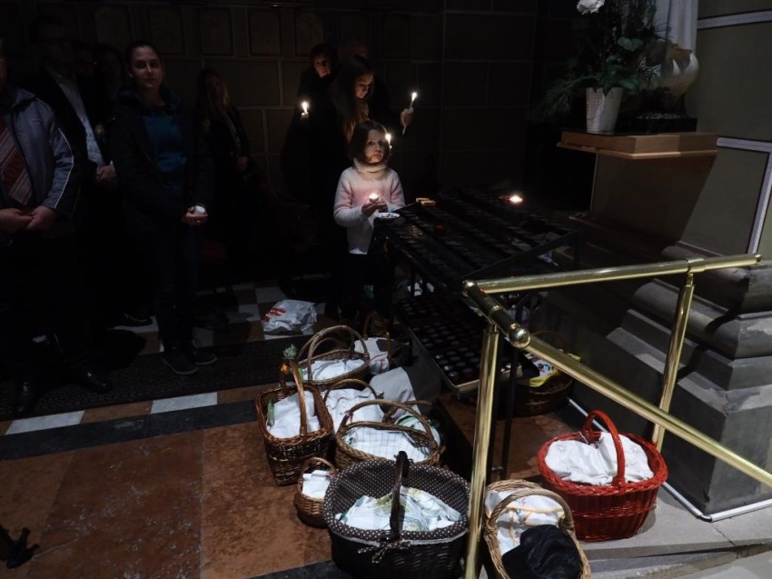 Székesfehérváron az eső miatt a székesegyház előterében zajlott a tűzszentelés, majd a megáldott húsvéti gyertya lángjáról a hívek meggyújtották saját gyertyáikat, és a templomban egyre nagyobb teret hódított a fény.