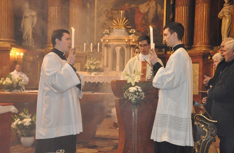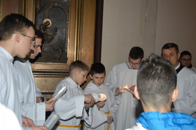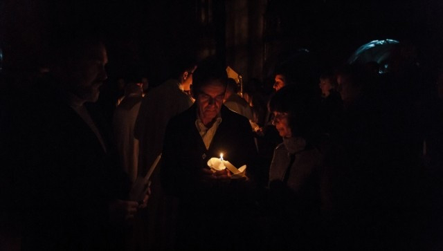 A húsvéti vigília liturgiája Vácott a székesegyház főbejárata előtt kezdődött. Beer Miklós püspök megszentelte a tűzet, majd elindult a fénnyel, szétosztva Krisztus világosságát a híveknek, akik a húsvéti gyertyáról gyújtották meg saját gyertyáikat.