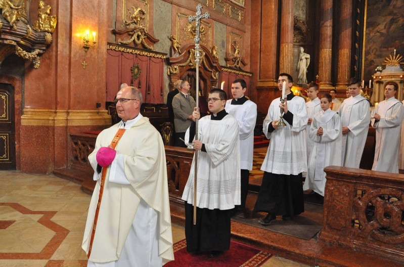 A mindenszentek litániája után Beer Miklós püspök megszentelte a vizet, majd megkeresztelt egy felnőttet, és két felnőttnek kiszolgáltatta a bérmálás szentségét.