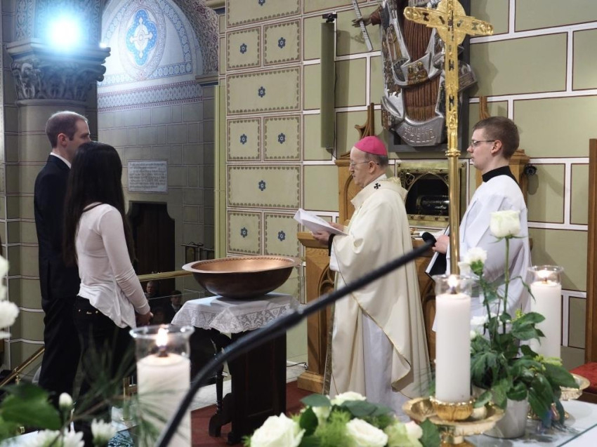 A főpásztor a keresztelendőkhöz fordulva ezt mondta: a bűnöktől megtisztító és megújító szertartásban Krisztust fogadják magukba, eledellé válik számukra. A bérmálás szentségében pedig megkapják a Szentlélek különleges ajándékát, mely a hit bátor megvallására sarkall mindenkit. Ezt követően 14 felnőttet keresztelt meg a főpásztor, s részesítette őket a bérmálás szentségében is.