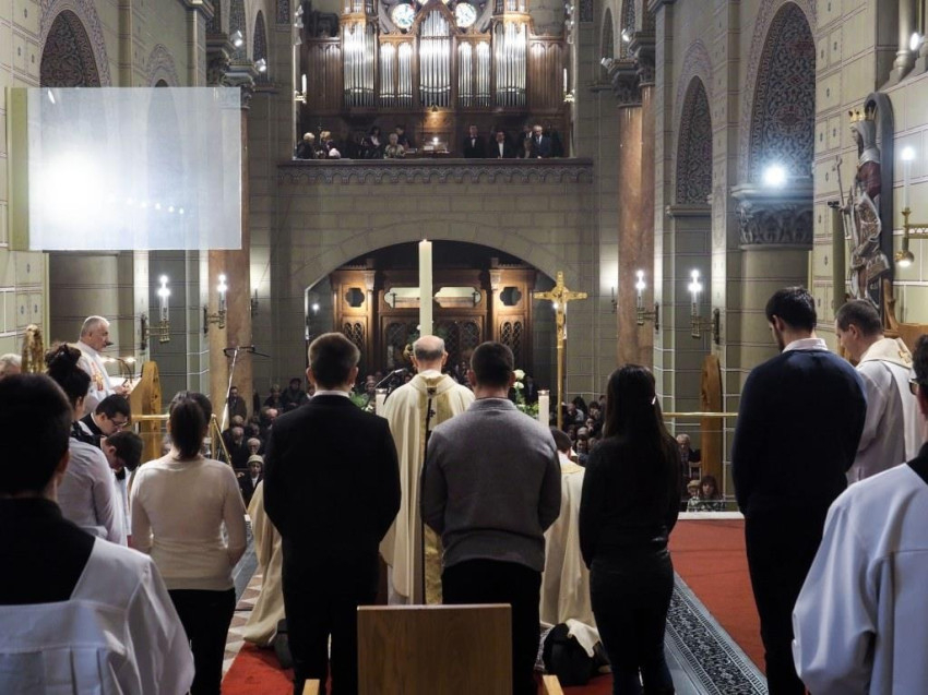 Veres András megyéspüspök vezetésével a győri Nagyboldogasszony-székesegyházban ünnepelte a hívő közösség húsvét vigíliáját március 31-én, nagyszombaton este.
