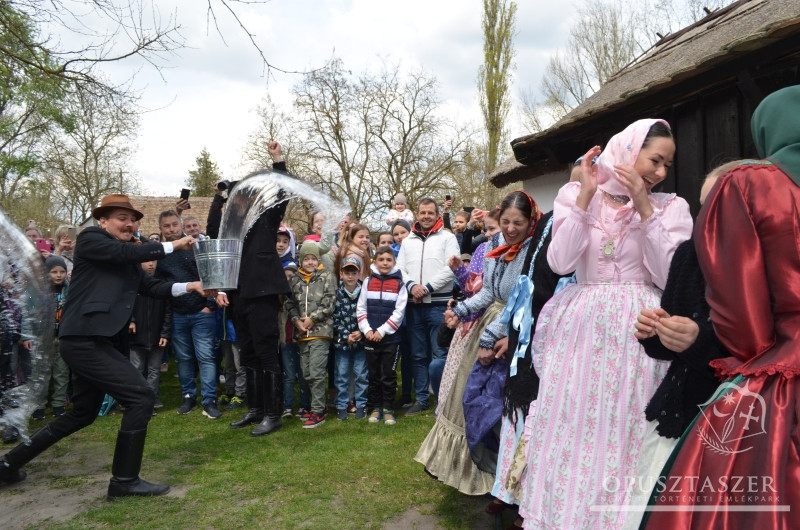 A szertartást az ünnep leglátványosabb eleme, a húsvéti locsolkodás követi: a viseletbe öltözött legények vizes vödröket ragadnak, és felkeresik a park házainál a lányokat… A programok sorát délután Berta János vándorkomédiás előadása zárja.