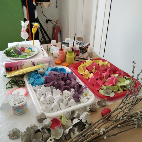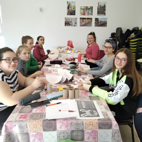 A felsős lányok díszeket készítettek az iskolában megrendezésre kerülő húsvéti vásárra.